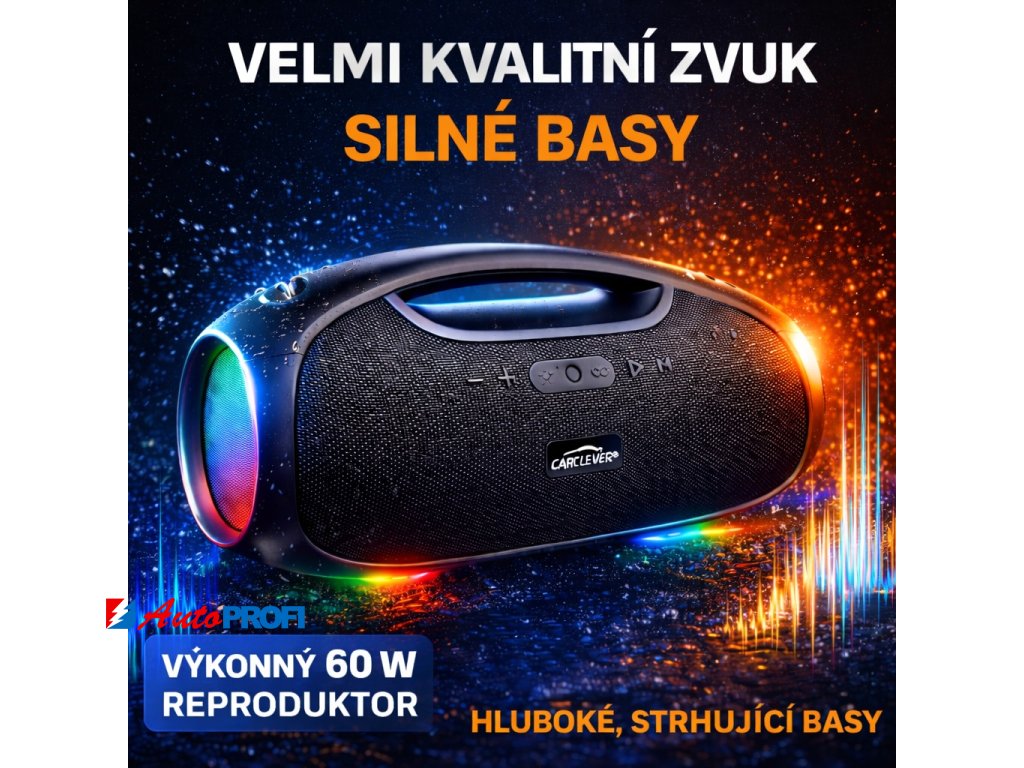 BTS03 CARCLEVER bezdrátový Bluetooth reproduktor, voděodolný IPX6, USB, AUX, MIC, RGB