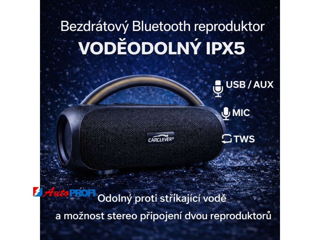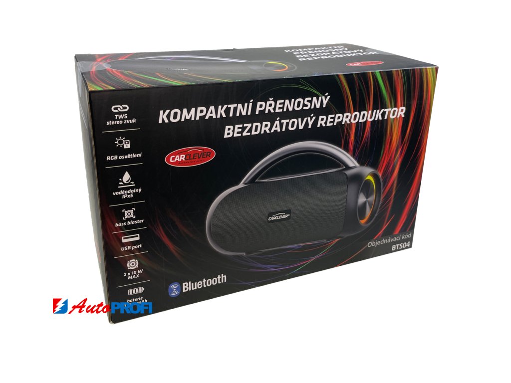 BTS04 CARCLEVER bezdrátový Bluetooth reproduktor, voděodolný USB, AUX, MIC, TWS, IPX5