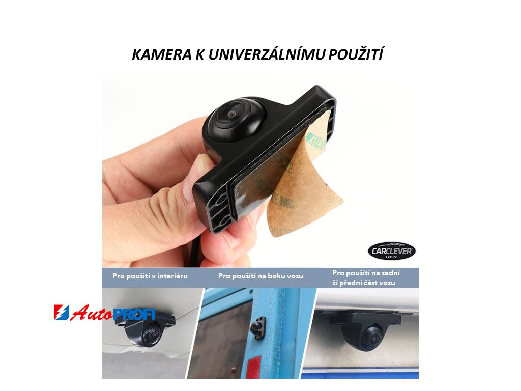 Barevná kamera určená pro volnou montáž do přední nebo zadní části vozu.