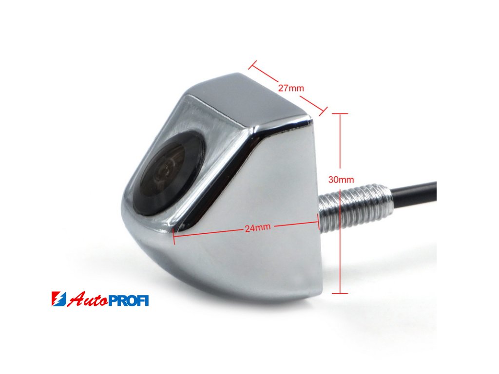 Kamera miniaturní vnější PAL s dynamickými trajektoriemi určená pro volnou montáž případně pro zabudování nejlépe nad zadní registrační značku vozidla. Kamera zároveň zobrazuje pomocné dynamické trajektorie, které reagují na pohyb obrazu.