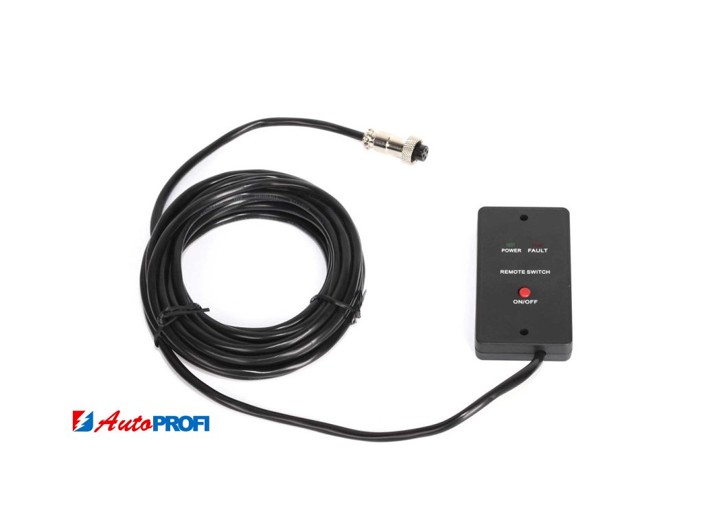 Dálkové ovládání umožňuje zapínat a vypínat měnič na vzdálenost 5 metrů (délka kabelu), je kompatibilní pouze s měniči vybavenými vstupem „REMOTE“. Ovladač obsahuje dvě indikační diody, zelená - napájení, červená - chyba.