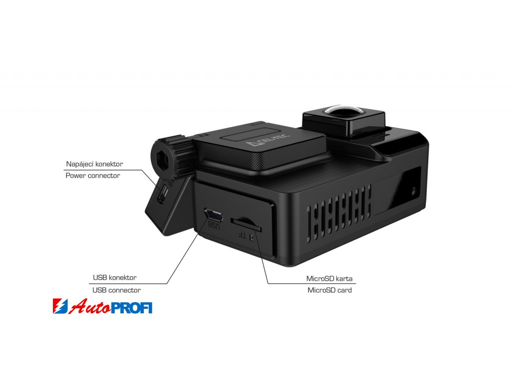 Kamera disponuje několika funkcemi, které se od kvalitní palubní kamery očekávají. Mezi ně jistě patří kolizní (nárazový) 3 osý g-senzor, který reaguje na prudký pohyb kamery (např. náraz do automobilu). Pokud senzor takový pohyb zaznamená, ochrání právě probíhající záznam proti přepsání smyčkou, situace tak zůstane uchována na microSD kartě a vy můžete pokračovat v jízdě. Probíhající záznam lze také ochránit jednoduše pomocí funkce na displeji. Dále nechybí záznam do smyčky (při zaplnění karty se začnou přepisovat nejstarší záznamy mimo uzamčených). Mezi další užitečné funkce patří možnost zapsání registrační značky vozidla, která je pak vidět přímo v záznamu. V případě nedostatečného osvětlení scény před vozidlem vás kamera zobrazením ikony světlometu na LCD vyzve k zapnutí světel (lze vypnout). Pro ukládání záznamů kamera využívá microSD kartu až do velikosti 256 GB.