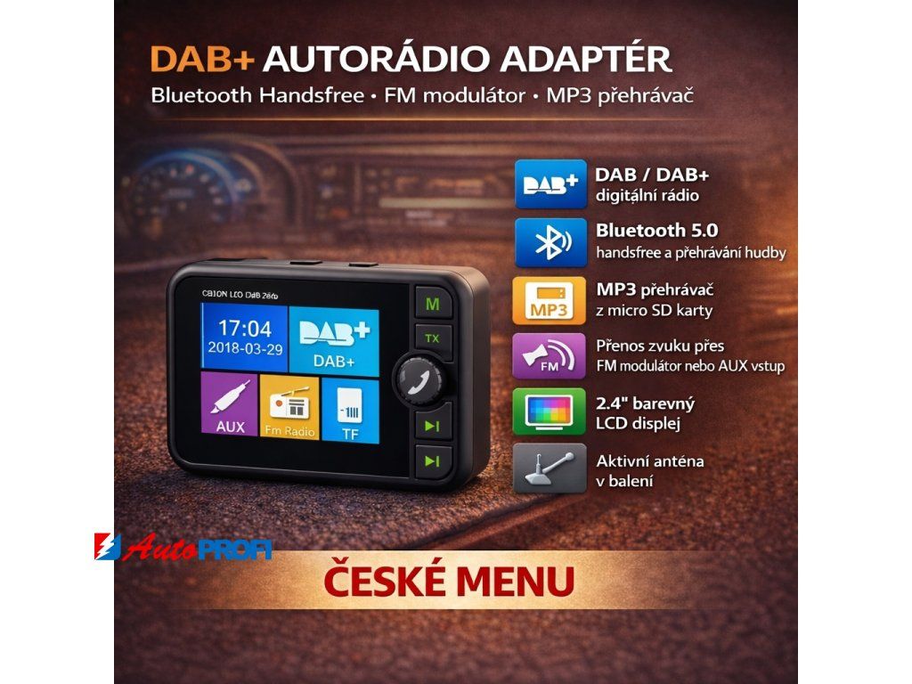 DAB-04 DAB přijímač / Bluetooth HF + přehrávač / micro SD / FM modulátor