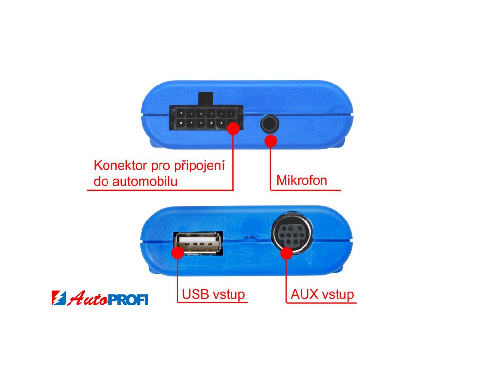- nepodporuje zobrazení telefonního seznamu, názvů skladem a textů na displaji autorádia