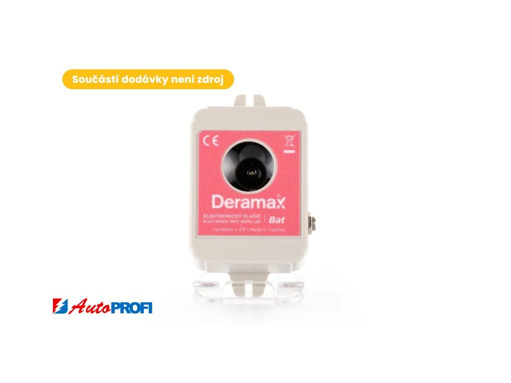 Plašič Deramax-Bat je napájený pomocí síťového zdroje. V naší nabídce najdete jak plašiče napájené ze síťového zdroje, tak plašiče napájené z baterií. Bateriové i zdrojové typy plašičů Deramax pracují ale zcela jiným způsobem a každý typ je optimalizovaný pro „svůj“ typ napájení. „Univerzální plašiče“ s možností napájení jak z baterií, tak i z napájecího zdroje u nás tedy nenajdete. Výrobou takových plašičů bychom znehodnotili jejich účinnost.