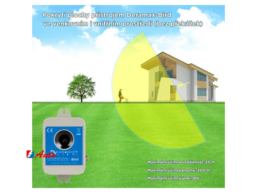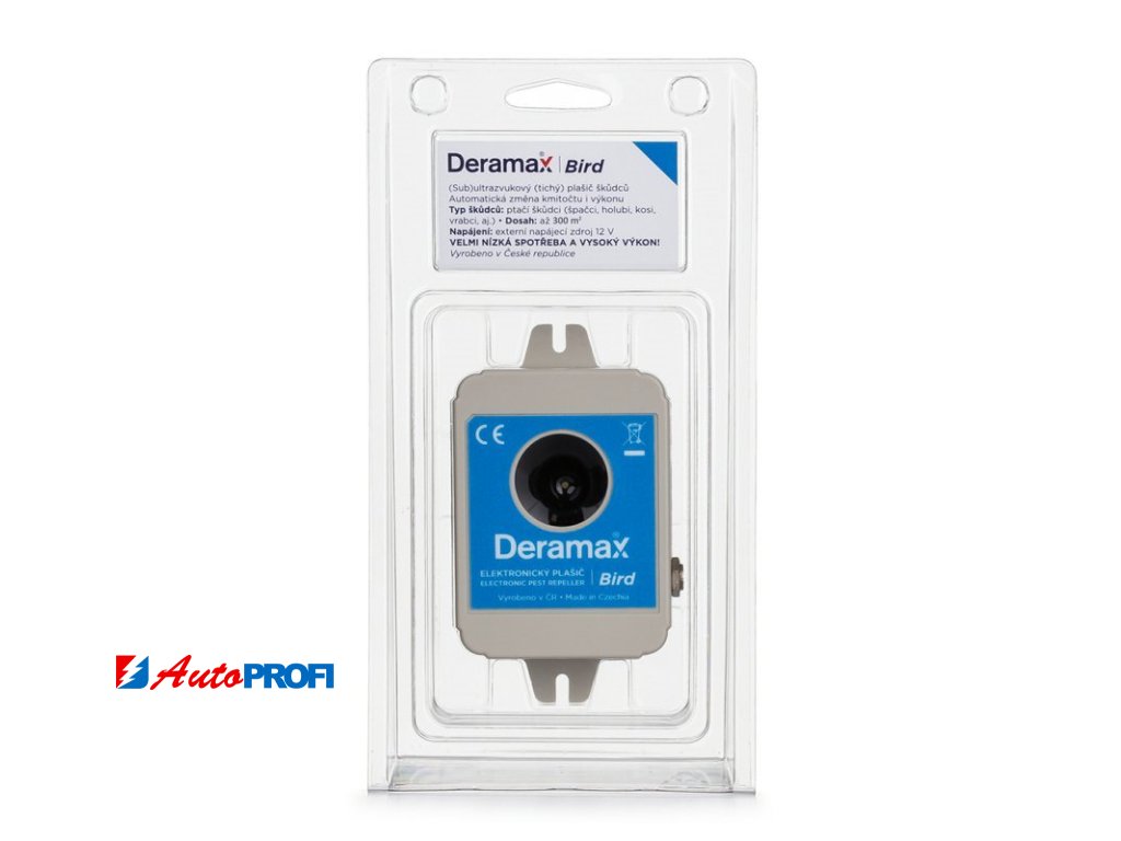 Přístroj Deramax-Bird je určen k využití jako plašič (odpuzovač) ptáků. Generuje specifické subultrazvukové signály, které jsou pro ptáky velmi nepříjemné, takže po krátkém čase chráněný prostor opouští a hledají si nové útočiště mimo prostor chráněný plašičem. V našich podmínkách je přístroj využitelný především jako plašič holubů, špačků, vrabců, kosů, havranů, vran, datlů, strakapoudů apod. Provoz přístroje je zcela ekologický bez využití chemických prostředků.