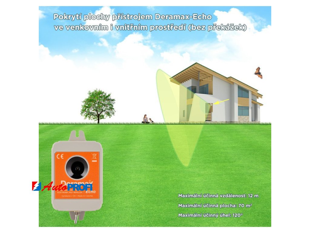 Plašič Deramax-Echo slouží k ochraně vnitřních i venkovních prostor před netopýry. Přístroj je pro člověka zcela bezpečný a bezhlučný. Škůdci jsou trvale obtěžováni ultrazvukovými signály plašiče a v krátkém čase chráněný prostor opouští. Provoz přístroje je ekologický bez využití chemických prostředků.