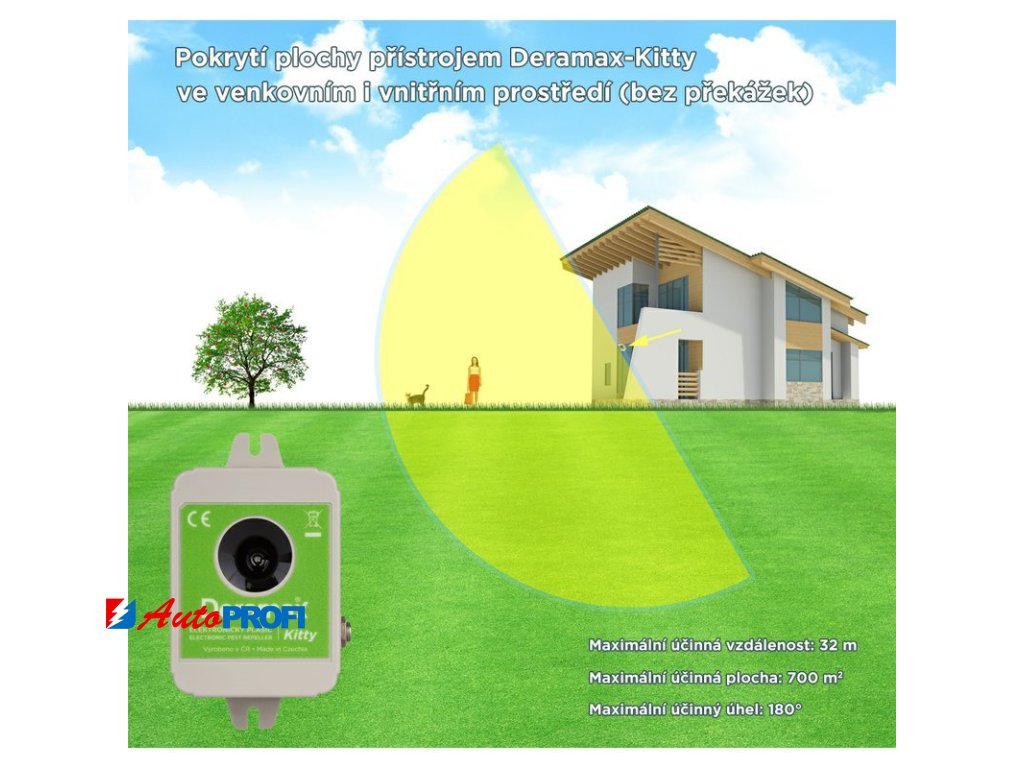 Plašič Deramax-Kitty slouží k ochraně vnitřních i venkovních prostor před kočkami, psy a divokou zvěří (vydry, srnčí, jelení, divoká zvěř, lišky, zajíci). Přístroj je pro člověka zcela bezpečný a bezhlučný. Škůdci jsou trvale obtěžováni ultrazvukovými signály plašiče a v krátkém čase chráněný prostor opouští. Provoz přístroje je ekologický bez využití chemických prostředků.
