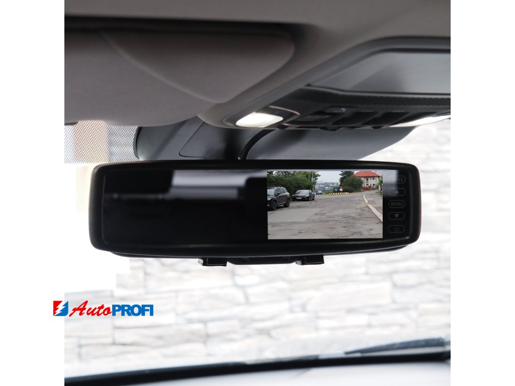 Monitor je vybaven úchyty na původní zpětné zrcátko. Zároveň nahrazuje funkci zpětného zrcátka.