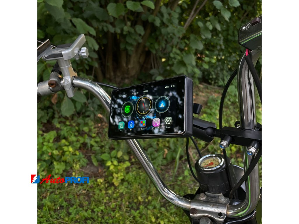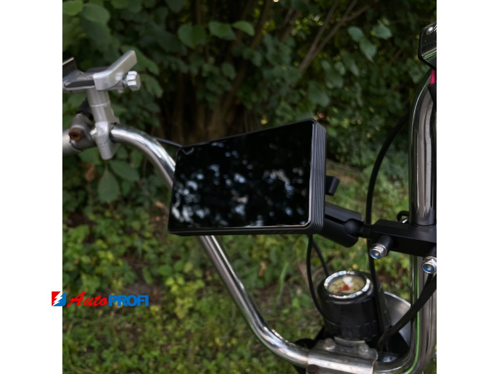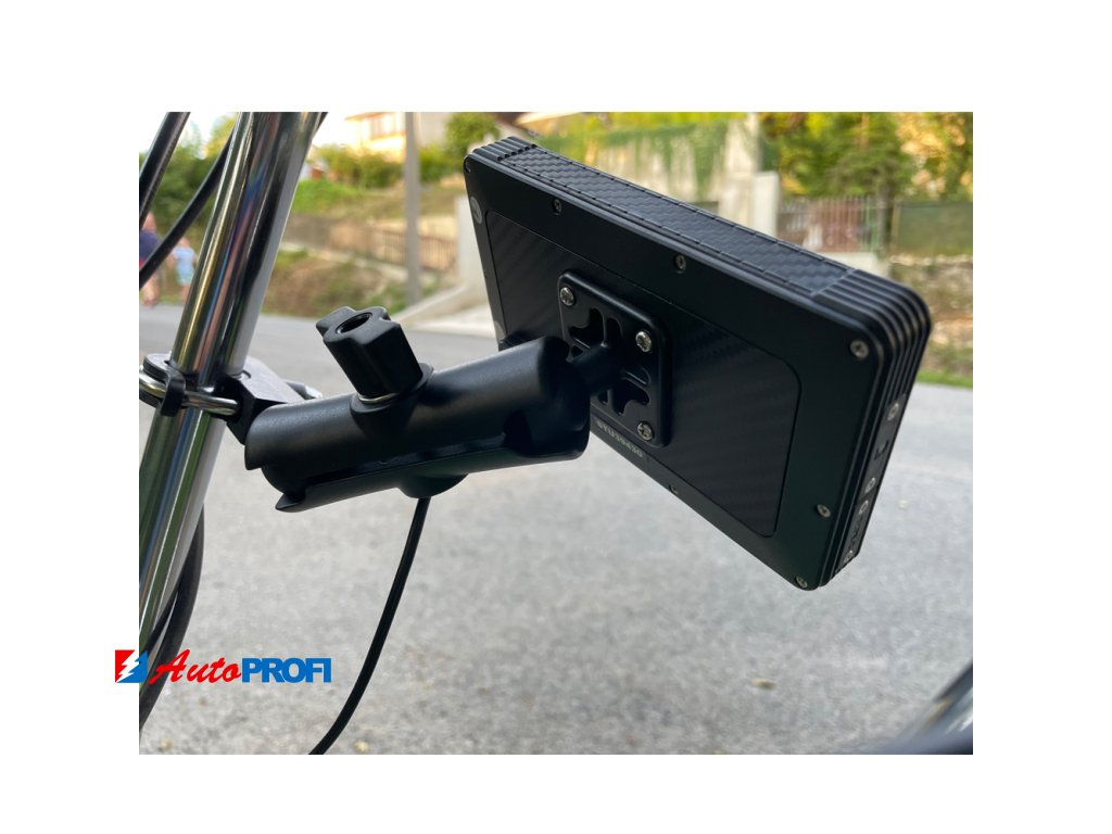 Monitor s dotykovou 5" obrazovkou na motocykl (Plug and Play, vhodné pro všechny motocykly) je dodáván se silným kloubovým držákem s možností instalace na řídítka.