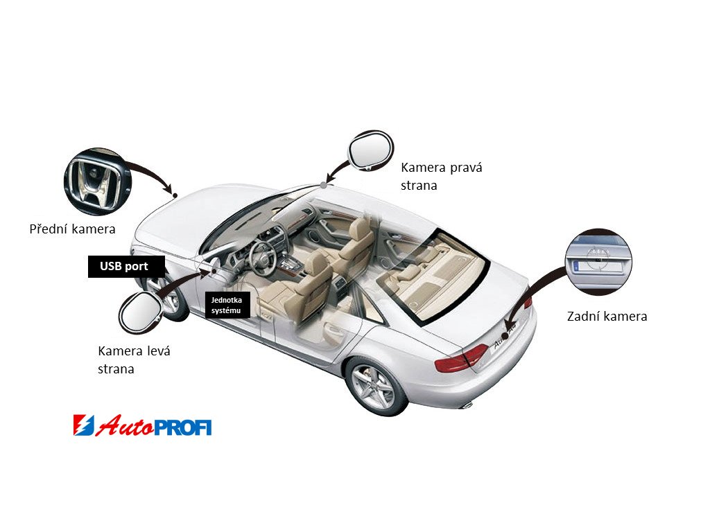 360° systém čtyř kamer umístěných na vozidle, který zobrazuje situaci kolem vašeho vozidla v reálném čase a budete mít 100% přehled o dění kolem vašeho vozu.