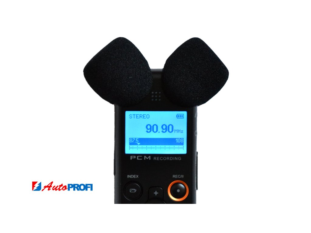 Diktafon disponuje integrovaným FM rádiem s možností automatického ladění, poslechu a pořizování záznamů. Rádio lze také využít jako zdroj zvuku pro funkci alarm.