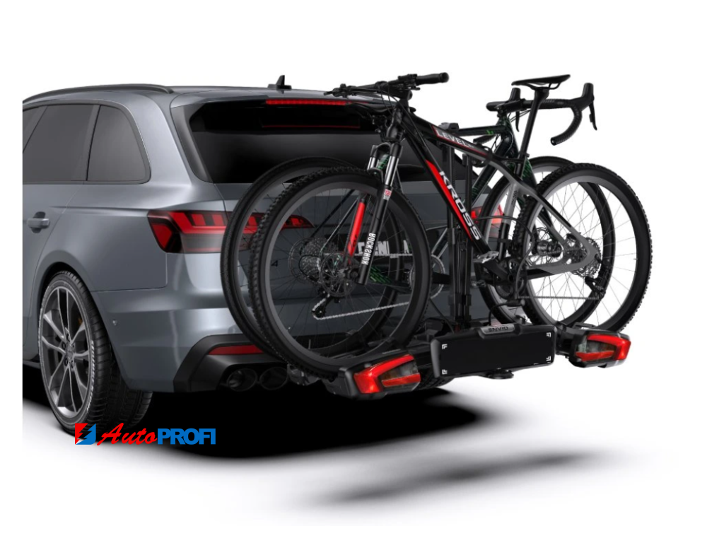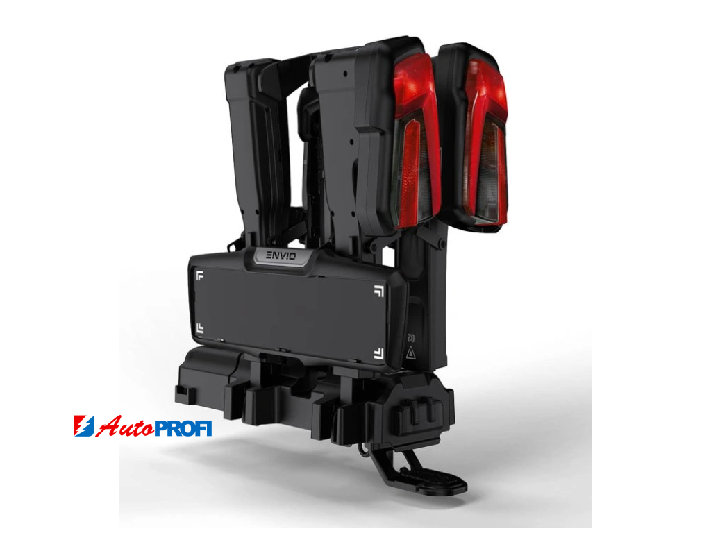 ENVIO eMAX 2 je robustní nosič kol na tažné zařízení pro 2 kola včetně elektrokol. Nabízí vysokou stabilitu, pevné uchycení a pohodlnou manipulaci při nakládání i používání. Díky sklopné konstrukci umožňuje pohodlný přístup do kufru i s naloženými koly.