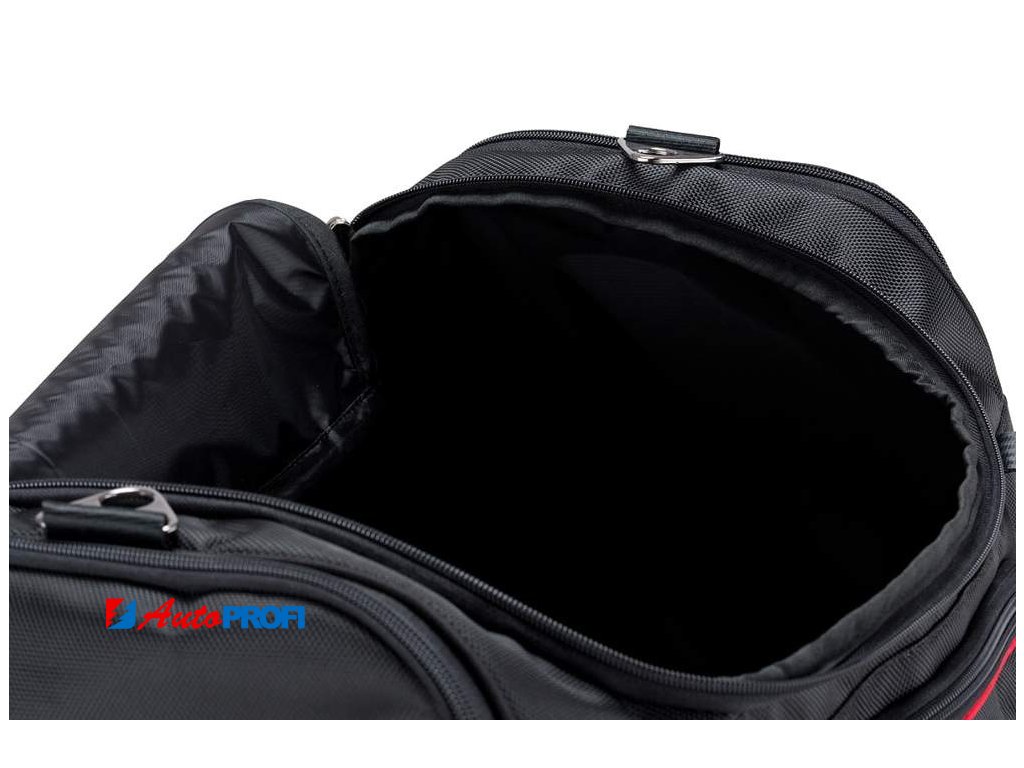 Asymetricky zkosená strana cestovních tašek KJUST zajišťuje, že taška přesně přiléhá k zadnímu sedadlu automobilu a umožňuje plně využít zavazadlový prostor.