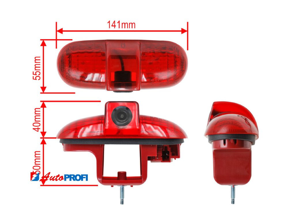 Kamera je integrována ve třetím brzdovém světle umístěném v levých křídlových dveřích, které nahrazuje originální brzdové světlo. Světelná signalizace brzdového světla je zajištěna integrovanými LED diodami. Připojovací konektor je schodný s originálním konektorem.