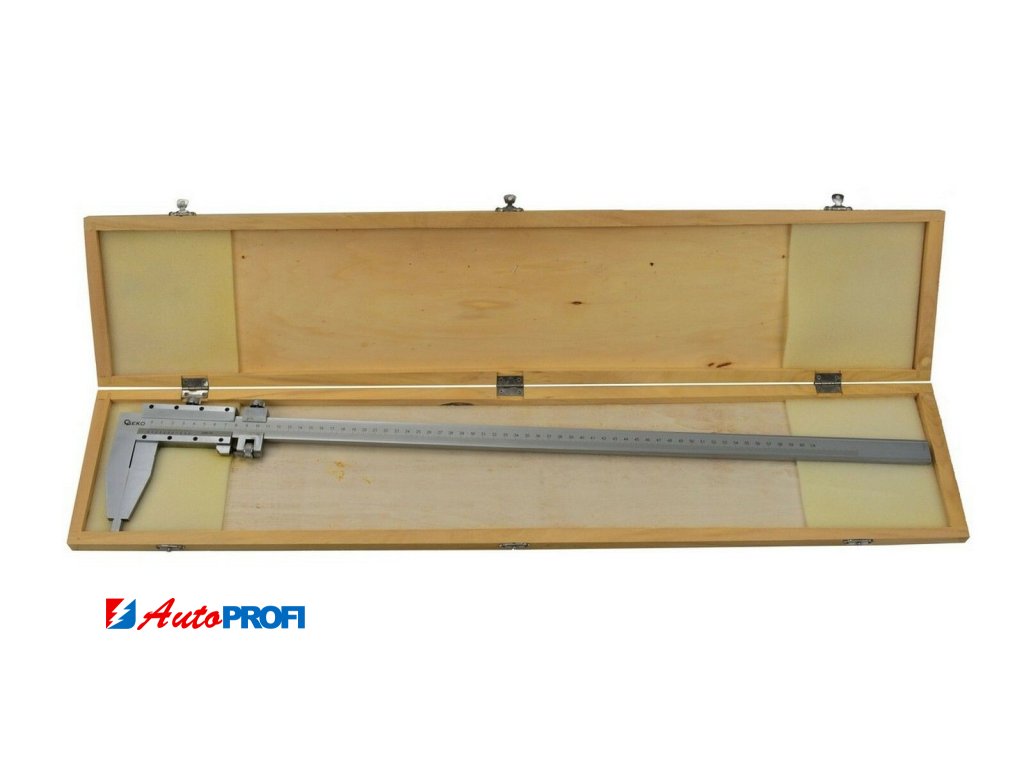 Posuvné měřítko s měřící délkou 600 mm, vybavené knoflíkem a vodícím jezdcem pro přesné nastavení. Dokonale funguje v průmyslu, při obrábění kovů, dřeva atd.