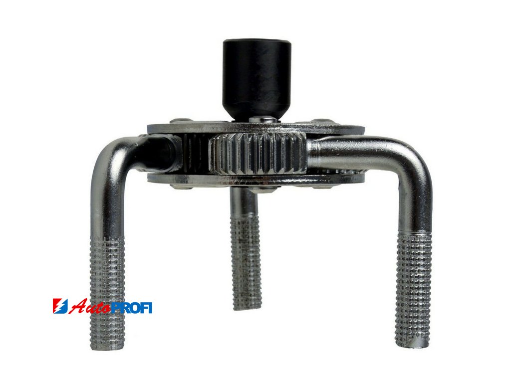 Univerzální klíč pro montáž a demontáž olejových filtrů. Pro filtry o průměru 65 - 130 mm. Vhodný i pro auta se zúženou pracovní oblastí. Celokovová konstrukce, povrchová úprava, zdrsnění (zuby) na upínacích ramenech pro pevný záběr při uvolňování nebo utahování olejového filtru. Klíč se nasadí na olejový filtr a pomocí ráčny 1/2" se olejový filtr utáhne či povolí.- V balení je obsažena redukce pro přechod z velikosti 3/8" na 1/2".
