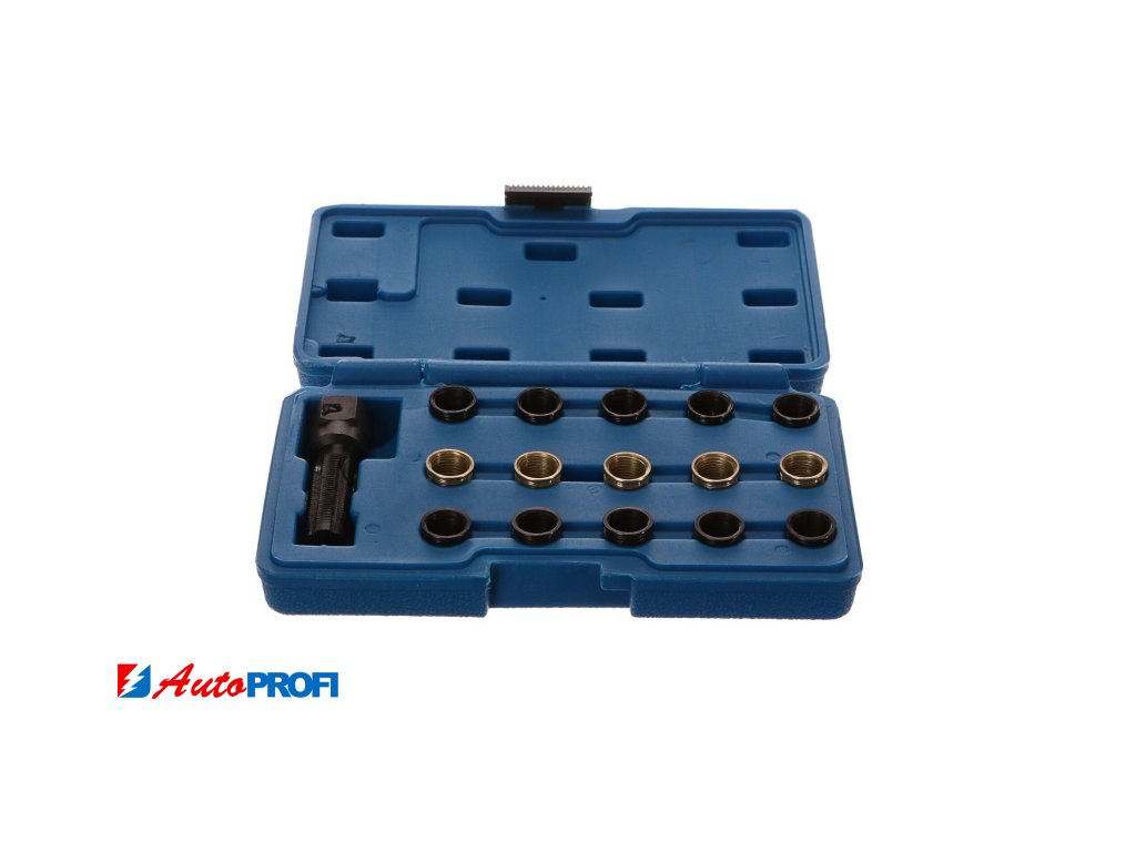 Profesionální sada umožňuje opravu poškozených sedadel zapalovacích svíček se závitem M14 x 1,25. Ovládá se 16 mm šestihranným nástavcem. Sada obsahuje závitové vložky různých délek.Obsah sady