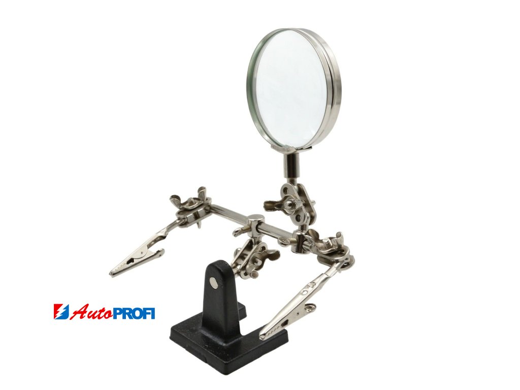 Šikovný držák s lupou je velmi praktické zařízení, které obsahuje lupu, stativ a držák, neboli třetí ruku. Díky lupě uvidíte i na ty nejmenší součástky a pomocí držáku si můžete přidržet další předměty. Toto zařízení uvítají především lidé věnující se elektronickým a elektrotechnickým pracím. Držák s lupou využijete i například při opravě hodinek, šperků či jiných předmětů pro usnadnění práce.g03216