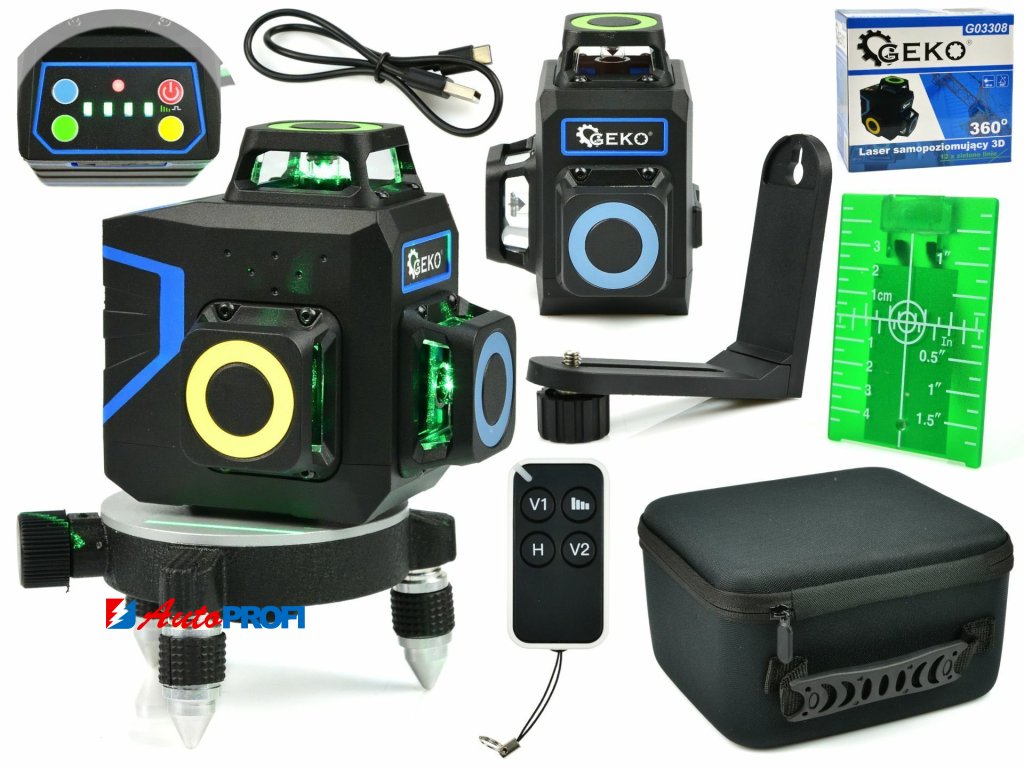 GEKO G03308 Laserová vodováha křížový laser měřidlo 3D 360°