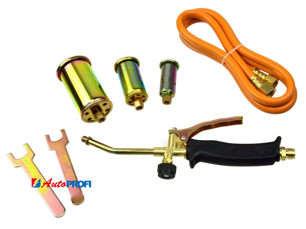 Profesionální plynový hořák pro ohřev a spalování v sadě se 3 tryskami.Perfektní pro ohřev, opalování a smršťování materiálů i pro lepení za tepla. Dále je vhodný také pro roztavení ledu, sněhu, spalování plevele, rozmrazování potrubí.