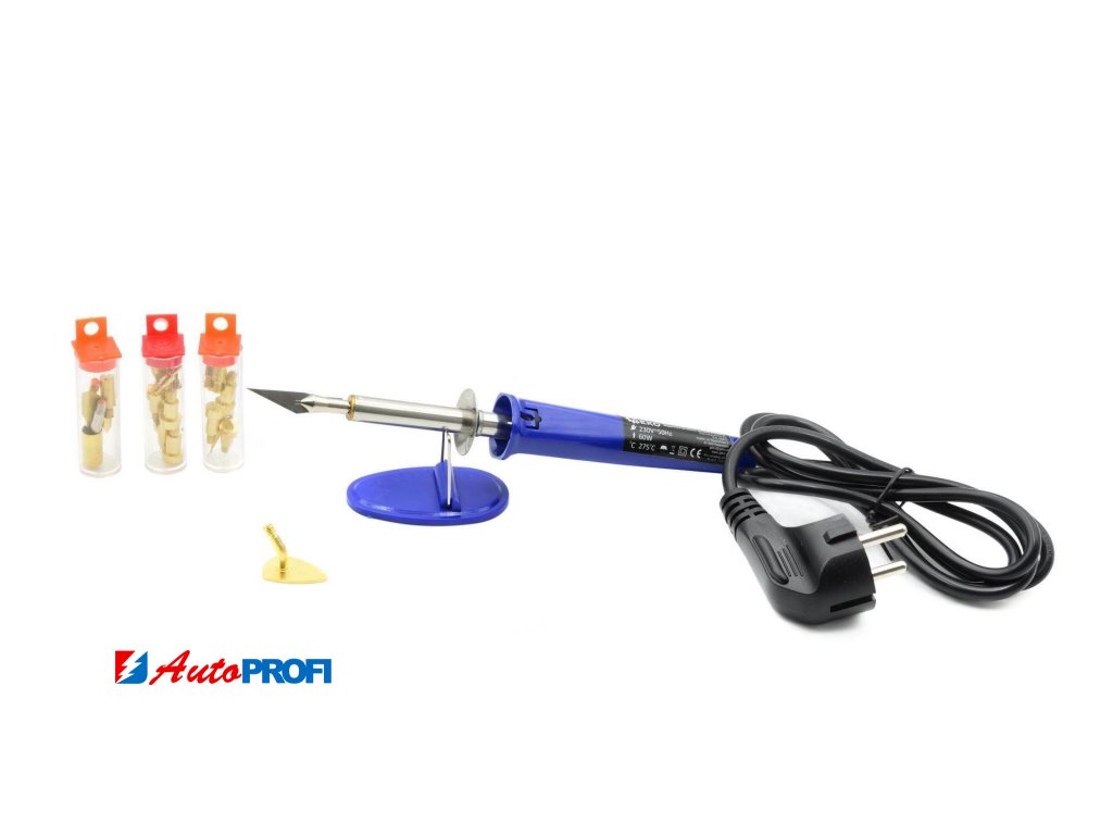 Tato praktická pájecí sada je ideální pro vypalování dekorativních vzorů a kreseb do dřeva, kůže či korku. Pájecí pero má protiskluzovou plastovou rukojeť odolnou vůči teplu a nárazu.Obsah balení: