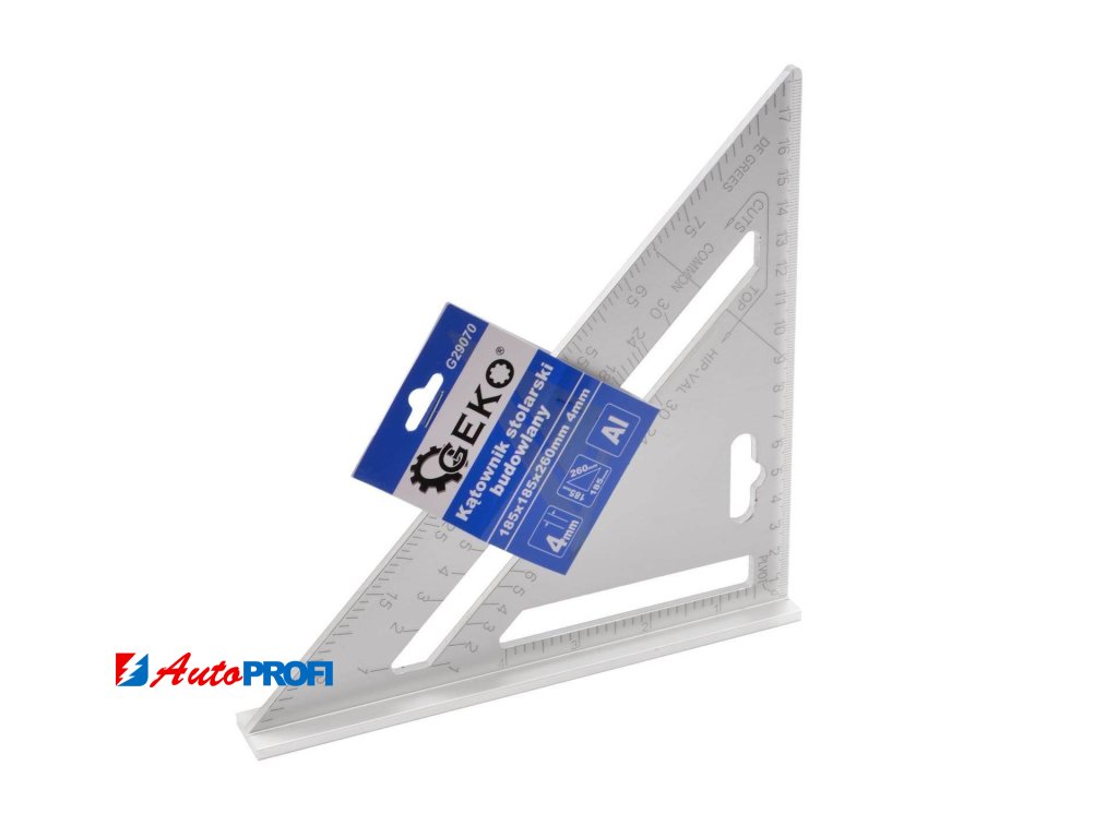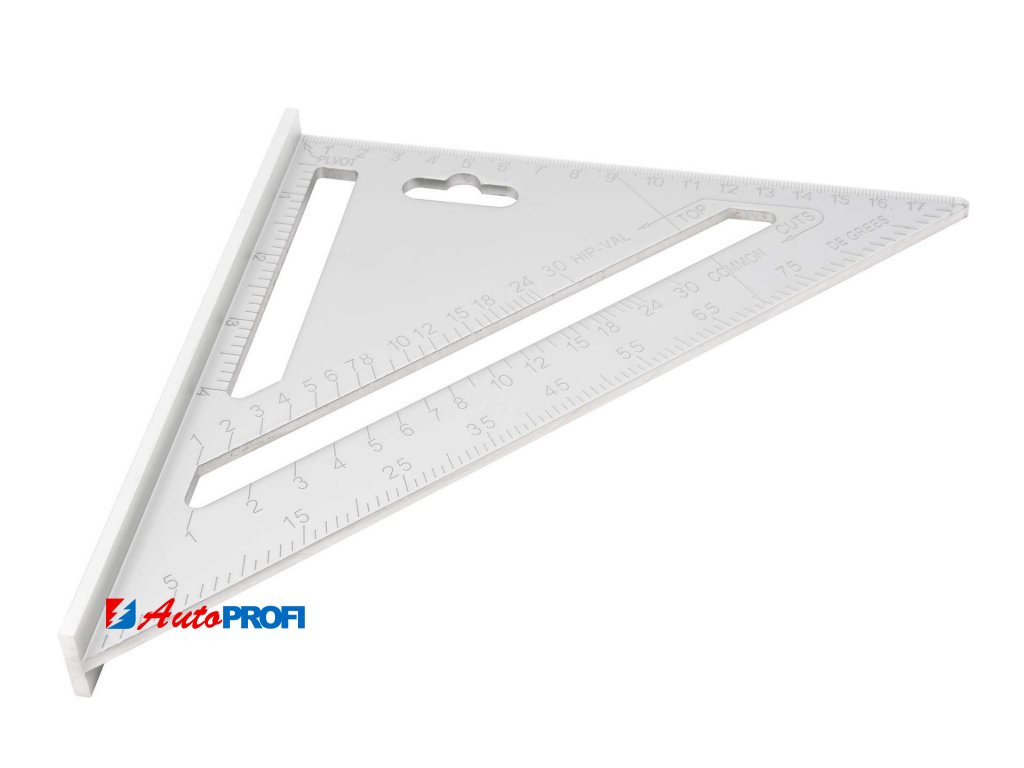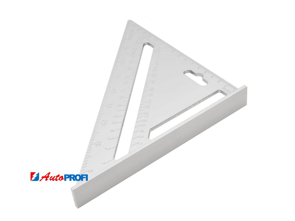 Univerzální a odolný hliníkový truhlářský a truhlářský čtyřhran (4mm) se stupnicí. Kontrolní a měřicí nástroj v mnoha stavebních a dokončovacích pracích umožňuje rychlé a přesné značení řezných úhlů na krokvích, nosných trámech a panelech.