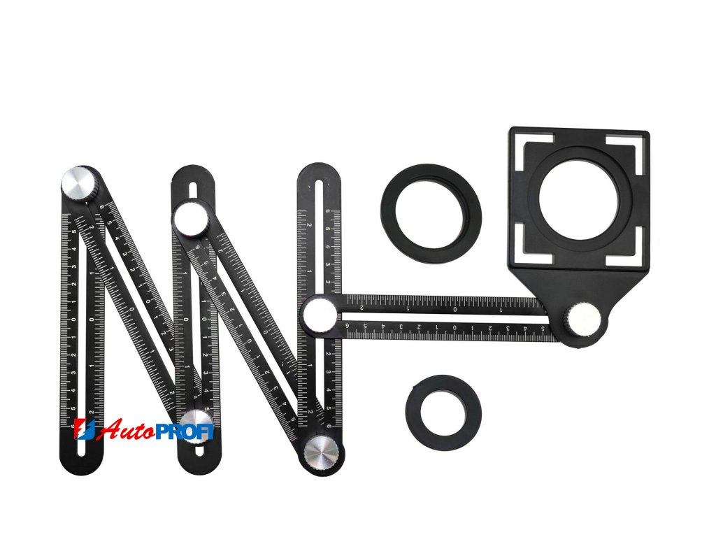 Praktické víceúčelové skládací pravítko je skvělý nástroj pro vytváření složitých tvarů, úhlů a opakovaných řezů. Měření je možní v centimetrech i v palcích. Úhlové pravítko se snadno skládá a využívá jedinečný utahovací mechanismus, který zvládnete povolit či utáhnout jednou rukou. Pravítko je ideální pomocník pro obkladače, podlaháře a podobná řemesla. Dokonale označí místo pro vyříznutí otvoru v dlaždicích, reprodukuje asymetrické tvary, disponuje trvalou stupnicí a je vyrobeno z odolného hliníku a prvotřídního plastu.Hlavní výhody