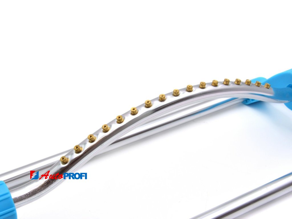Výkyvný zavlažovač vyrobený z vysoce kvalitního plastu a hliníku. Plynule nastavitelné postřikovací pole je ideální pro zavlažování obdélníkových ploch, v závislosti na tlaku vody až do 250 m2. Je vybaven 17 výstupními otvory.Technické parametry: