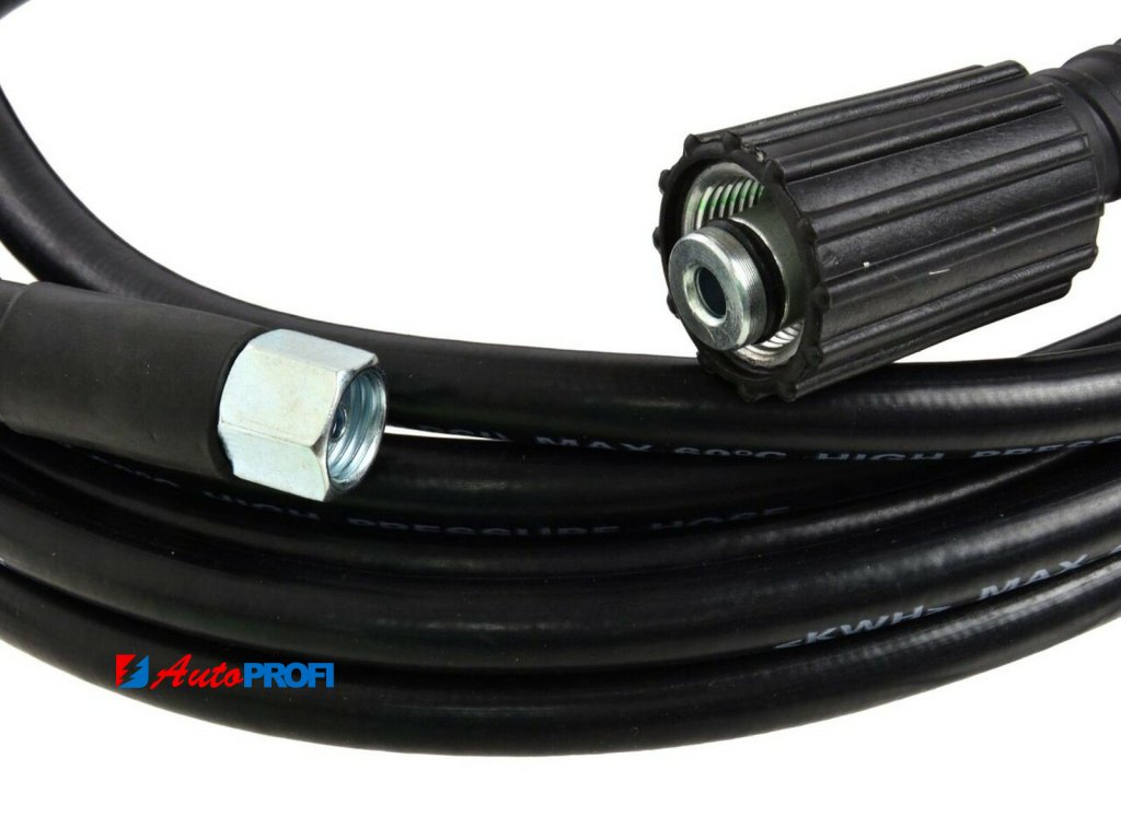 Hadice vysokotlakého čističe namontovaná na 22 mm závitu. Díky použití typických závitů (14 mm ze strany pistole a 22 mm ze strany čističe) se hadice hodí prakticky ke všem podložkám a tlakovým pistolím.