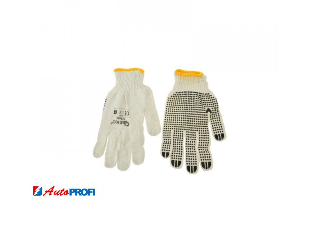 Ochranné rukavice z pletené bavlny. Rukavice se často používají pro všechny druhy mechanických, zahradnických, stavebních a domácích prací. Při kontaktu s vodou se nes smršťují, což zajišťuje perfektní přilnavost na mokrém předmětu.