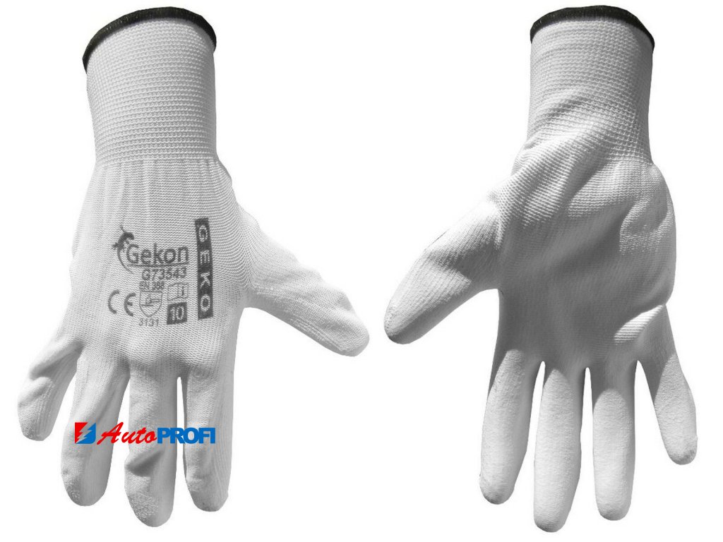GEKO G73543 Ochranné rukavice bílé z pletené bavlny, polomáčené v PU, velikost 10"