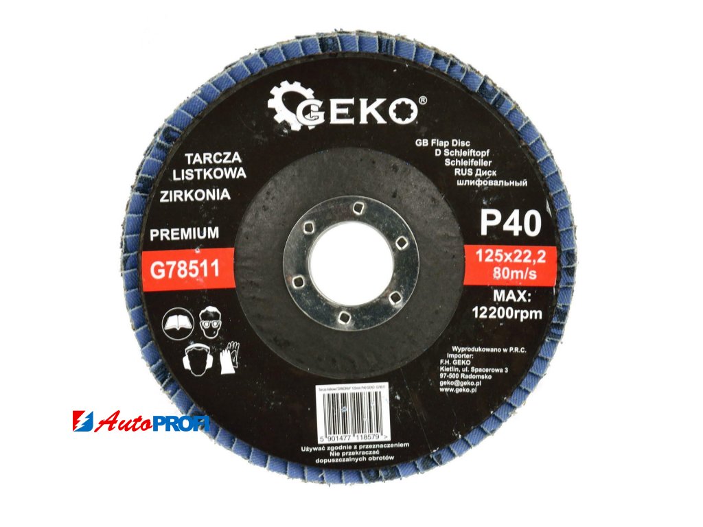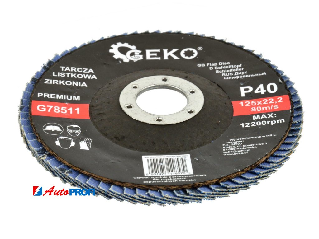 Lamelové kotouče značky GEKO se vyznačují spolehlivostí a dlouhou životností. Použití najdou brusné lamelové kotouče zejména při broušení nerovností, srážení hran, odjehlování a broušení svarů, odstranění starých nátěrů, čištění kovových materiálů od rzi apod. Lamelové kotouče lze také použít na různé materiály jako je ocel, hliník, litina, beton, dřevo nebo plast. Kotouč je navržen pro použití se standardními úhlovými bruskami.Technické parametry: