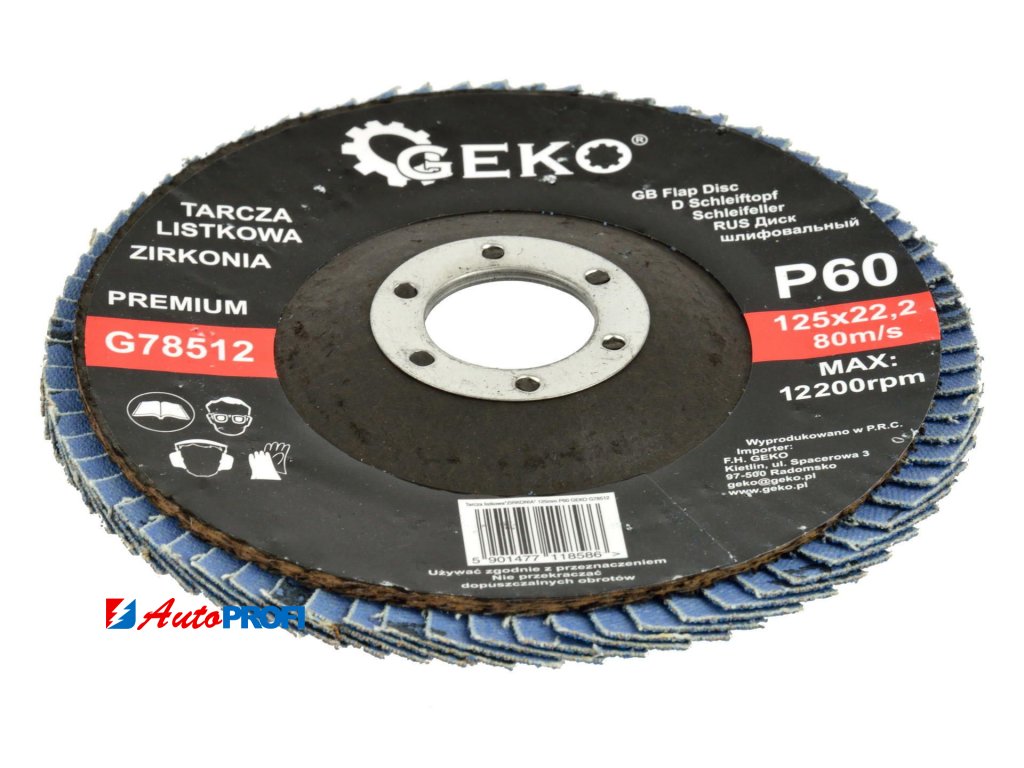 Lamelové kotouče značky GEKO se vyznačují spolehlivostí a dlouhou životností. Použití najdou brusné lamelové kotouče zejména při broušení nerovností, srážení hran, odjehlování a broušení svarů, odstranění starých nátěrů, čištění kovových materiálů od rzi apod. Lamelové kotouče lze také použít na různé materiály jako je ocel, hliník, litina, beton, dřevo nebo plast. Kotouč je navržen pro použití se standardními úhlovými bruskami.Technické parametry: