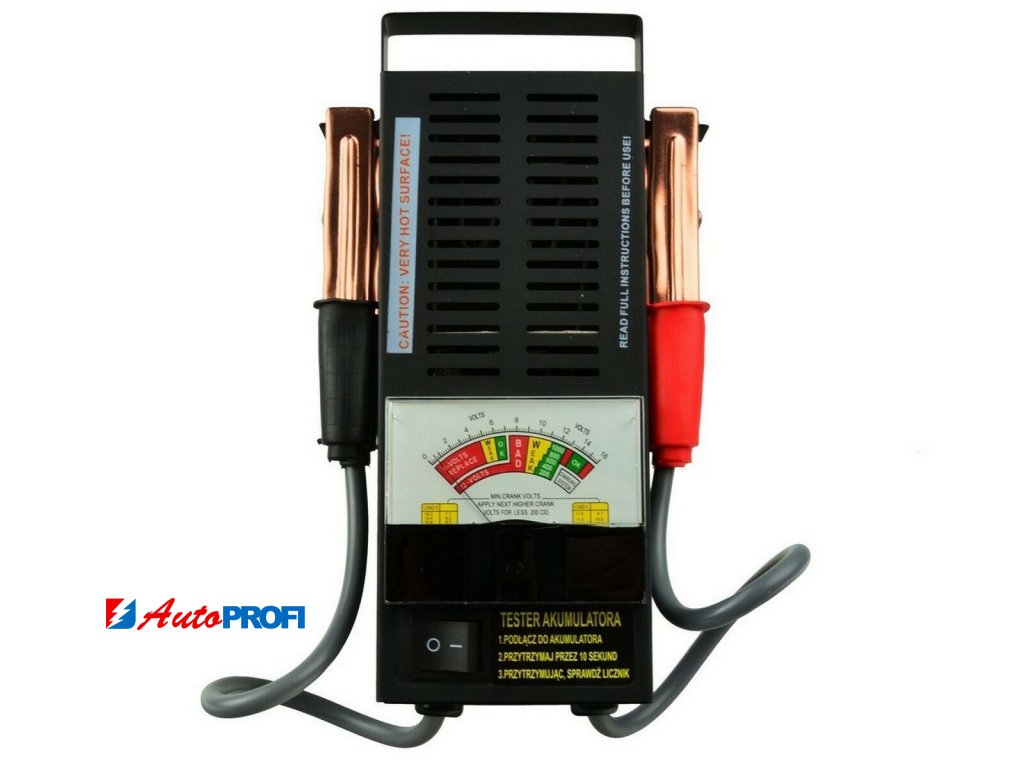 Zátěžový tester pro důkladné prověření stavu autobaterie. Pomocí zátěže 100 Ampér umožní kontrolu stavu nabití a zároveň to, do jaké míry je akumulátor opotřebovaný.Tento tester nevyžaduje žádný napájecí zdroj (je napájen přímo z měřené autobaterie), takže jeho použití je velmi snadné a mobilní. Je osazen zátěžovým obvodem, dvěma svorkami pro připojení k akumulátoru a analogovým měřákem pro zobrazení výsledku měření.