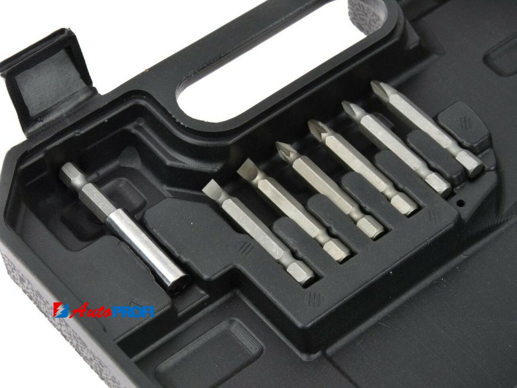 - Bity 25 mm : Ploché 3, 4, 5, 6, 7 mm; Pozidrive PZ0, PZ1, PZ2, PZ3; Philips PH0, PH1, PH2, PH3; Torx T10, T15, T20, T25, T27, T30, T40, T45; Hex H2, H2.5, H3, H3, 5, H4, H5, H6
