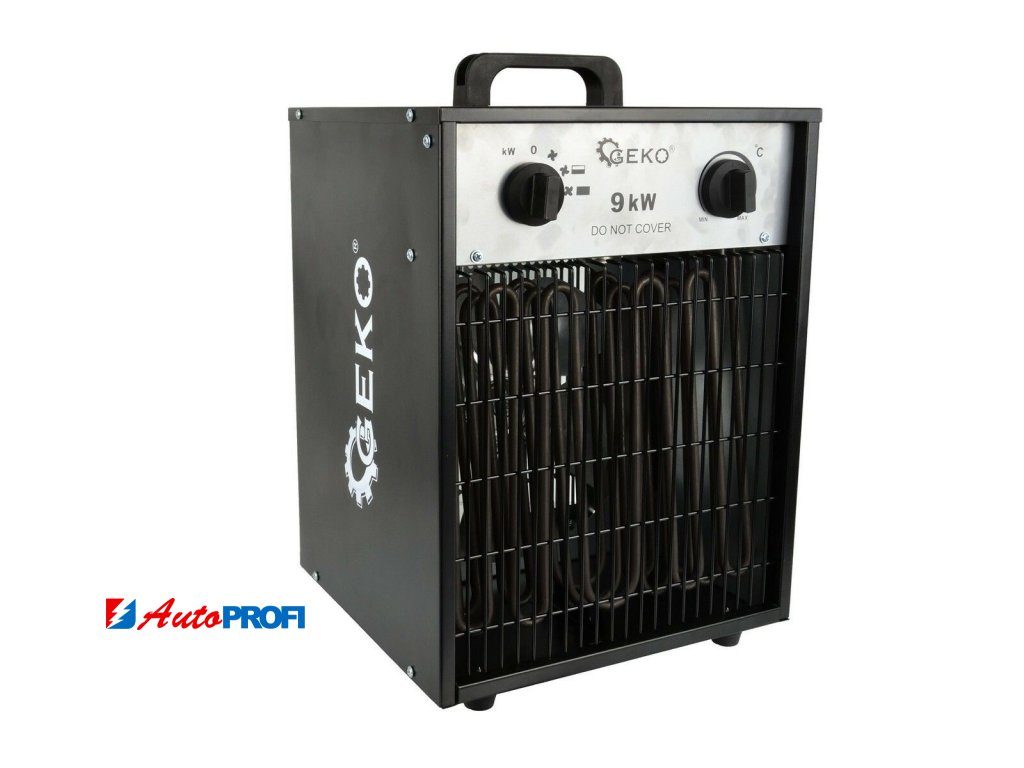 Elektrický ohřívač GEKO o výkonu 9000 W je velmi účinné zařízení zajišťující čisté a bezpečné vytápění. Toto topidlo slouží k vytápění obytných a hospodářských místností, jako jsou sklepy, garáže, dílny apod. Zařízení je snadno ovladatelné, lehké a plně přenosné, díky čemuž se skvěle hodí pro příležitostné nebo nouzové vytápění prostorů. Zabudovaný ventilátor účinně rozptyluje teplo do svého okolí. Po zapnutí ohřívače a nastavení teploty na 0 °C jej lze použít také jako ventilátor. Tento přímotop ocení při své práci zejména zedníci, malíři, instalatéři nebo třeba obkladači.Hlavní výhody: