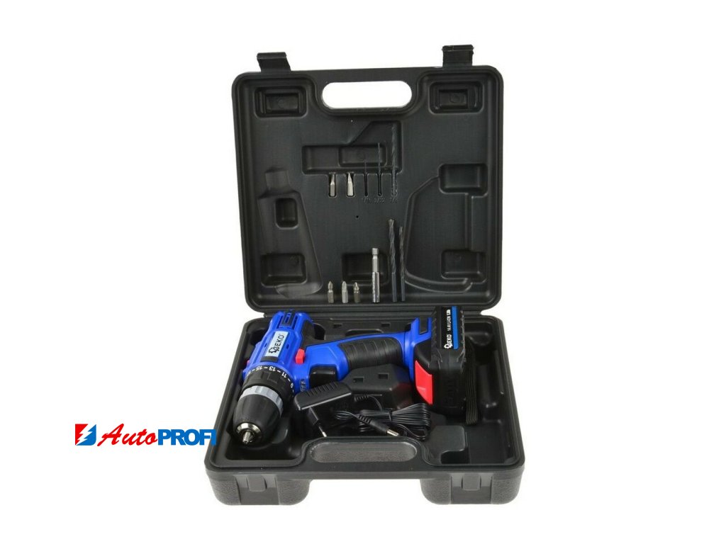 Popis produktu:Akumulátorový vrtací šroubovák je napájen akumulátorem s kapacitou 1,3Ah, má 2-stupňovou regulaci utahování a plynulou 21 stupňovou regulaci otáček.