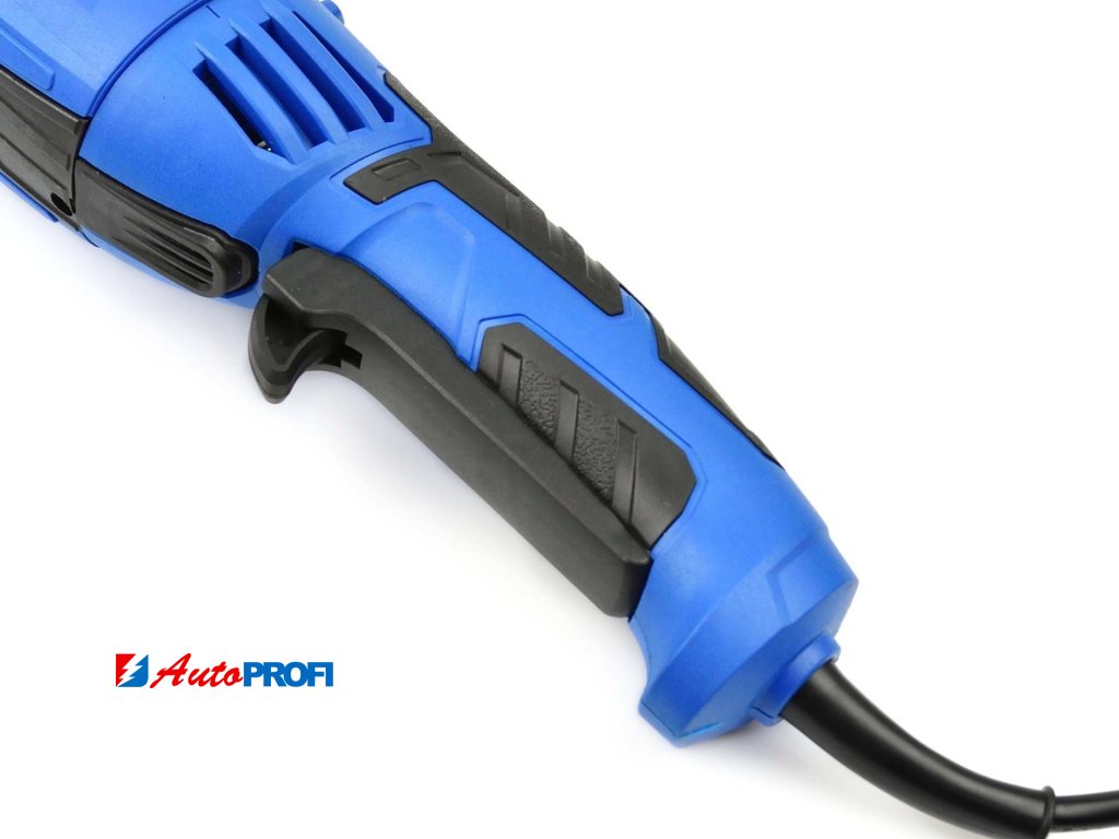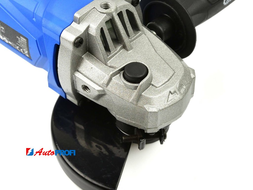 Úhlová bruska 125mm vybavená 1200W elektromotorem. Bruska umožňuje uchycení rukojeti ve třech polohách, což umožňuje pohodlnou práci pravákům i levákům. Dalším komfortem je otočná rukojeť (90° doprava / 90° doleva) zajišťující vysoký komfort a pohodlí bez ohledu na polohu brusky. Regulace otáček v 6-stupňovém rozsahu (3000-11000 RPM) umožňuje přesné zpracování různých materiálů. Zámek otáčení vřetena umožňuje rychlou a snadnou výměnu kotouče. Bruska je vyroben z kvalitních materiálů.Hlavní výhody: