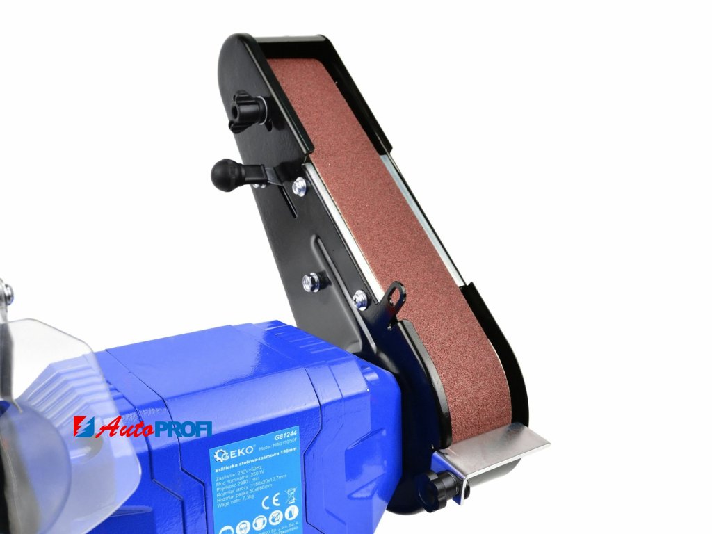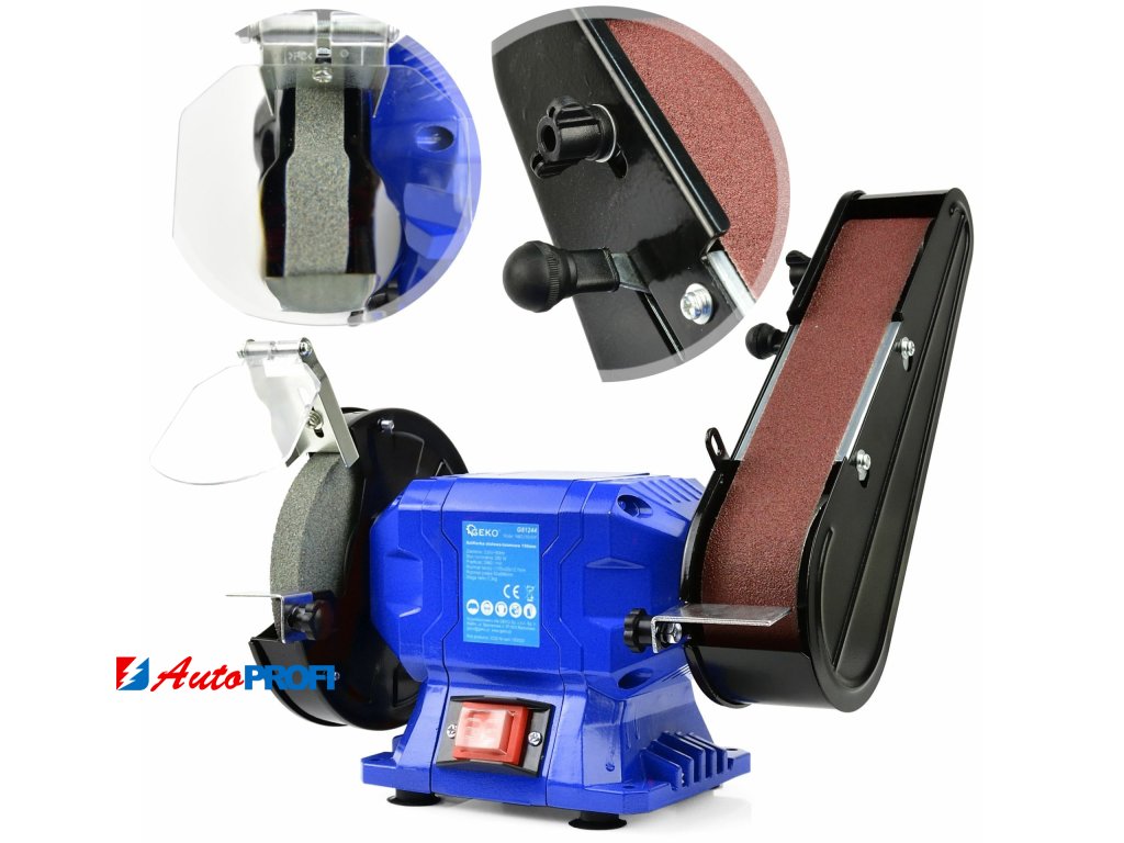Praktická stolní pásová bruska umožňuje efektivně provádět práce, jako je broušení, ostření, čištění různých typů předmětů a nástrojů. Je vybavená výkonným elektromotorem a disponuje brusným kamenem o průměru 150 mm a tloušťce 20 mm upevněným na trnu o průměru 12,7 mm a nekonečnou pásovou brusnou ližinou o rozměrech 50x686 mm. Bruska je určena pouze pro práci za sucha.Hlavní výhody: