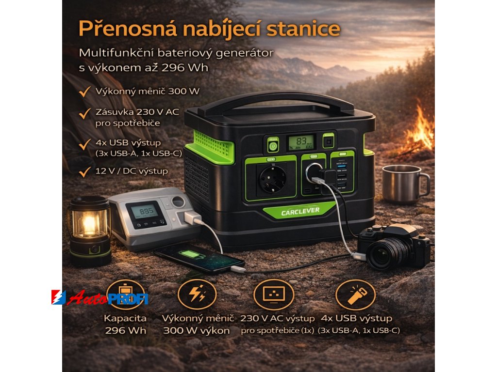 GPS300 Nabíjecí stanice CARCLEVER - powerbanka, 80.000mAh, AC-300W