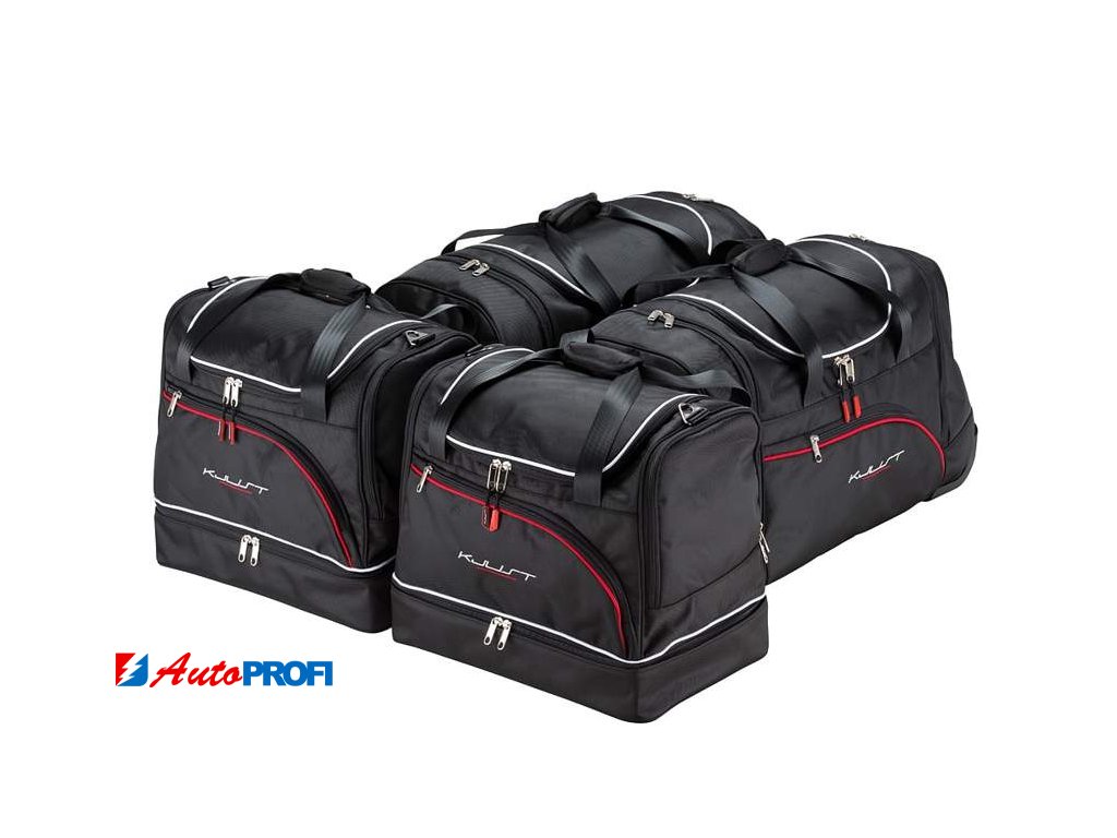 Asymetricky zkosená strana cestovních tašek KJUST zajišťuje, že taška přesně přiléhá k zadnímu sedadlu automobilu a umožňuje plně využít zavazadlový prostor.