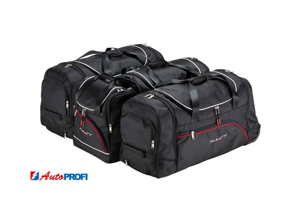 Asymetricky zkosená strana cestovních tašek KJUST zajišťuje, že taška přesně přiléhá k zadnímu sedadlu automobilu a umožňuje plně využít zavazadlový prostor.
