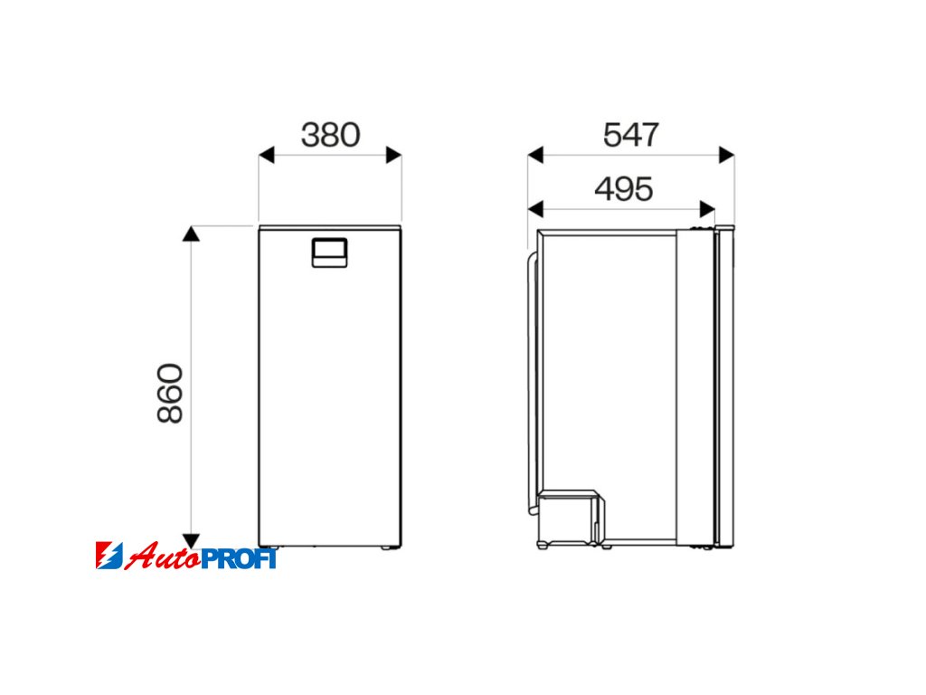 Rozměry (v/š/h) mm: 860 / 380 / 547 (minimální zástavbová hloubka pro tzv. předsazenou montáž: 495 mm - bez kompresoru)