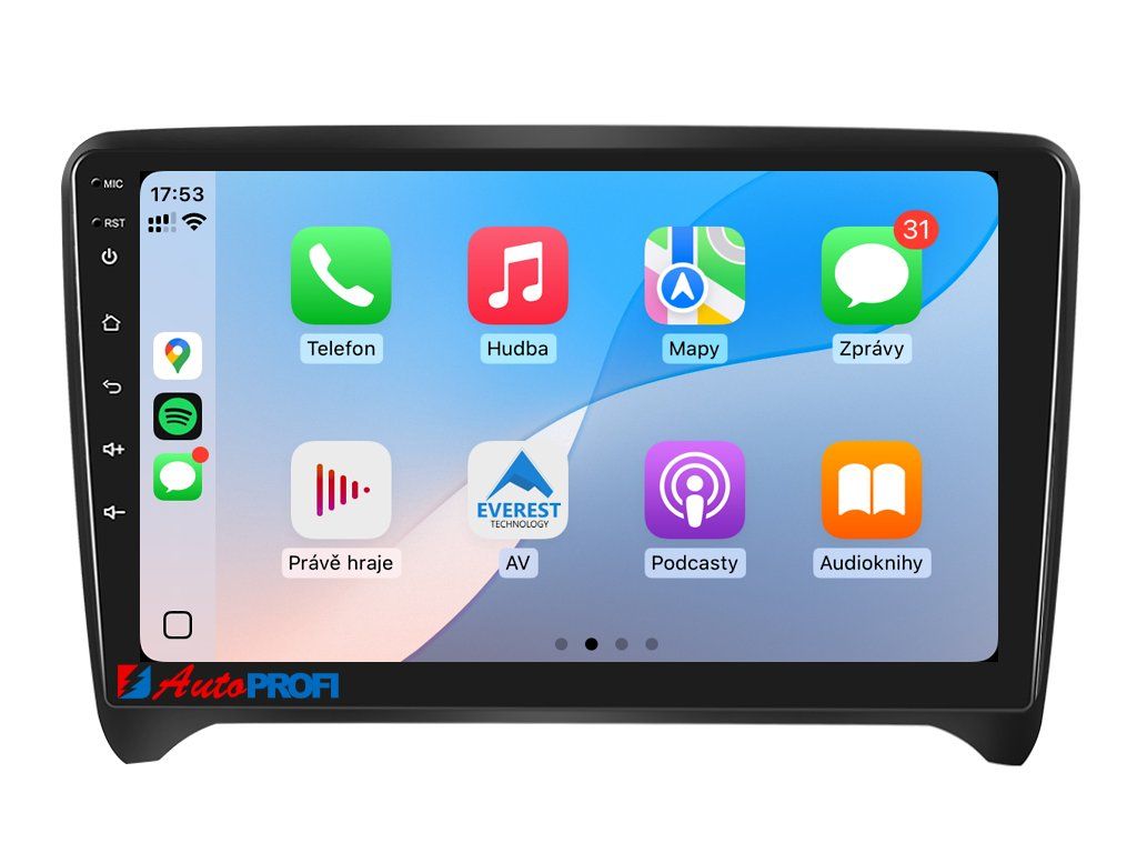 Cesta automobilem se změní na nevšední zážitek díky autorádiu Xtrons IQP-XEV28 pro Audi TT. Přednostním rysem tohoto rádia je velká a přehledná dotyková obrazovka s neuvěřitelným rozměrem 9 palců a LCD IPS technologií zobrazení. Pro Vaši představu se jedná o přibližnou velikost 23 cm. Díky přehledné obrazovce budete mít veškeré ikony na dosah ruky. Autorádio se může pyšnit 8 GB RAM a dostatečně velkou vnitřní paměti o velikosti 256 GB. O nepostradatelný zvukový zážitek se postará rozšířený zvukový ekvalizér s moderní funkcí DSP (Digital signal processor), která Vám mnohonásobně zvýší kvalitu přehrávané hudby. Díky 4G modulu se můžete stát majitelem autorádia, který funguje i jako smartphone, umožňující využívání online GPS navigace a dalších funkcí. Aplikace Apple CarPlay a Android Auto Vás jistě oslní svým bezproblémovým propojením autorádia s mobilním telefonem. Za pomocí této chytré funkce můžete hravě ovládat svůj telefon na obrazovce autorádia. Funkce Bluetooth Vám umožní pohodlné a bezpečné Handsfree volání a vyřizování důležitých hovorů. Pokud si občas nevíte rady se správnou cestou, můžete využít zabudovaného GPS modulu, který Vás přivede na tu správnou cestu. Pomocí Google obchodu si můžete stáhnout svou oblíbenou GPS navigaci. Operační systém Android 14 se postará o ovládání nespočtů oblíbených aplikací. Své spolujezdce při dlouhých cestách můžete zabavit oblíbeným filmem či videem. Ti budou ohromeni obrazovkou v HD rozlišení. Pro bezpečné couvání můžete využít snadné propojení autorádia s parkovací kamerou. Autorádio nabízí možnost výběru z různých jazyků, které obsahují přeloženou základní část systému do českého jazyka.