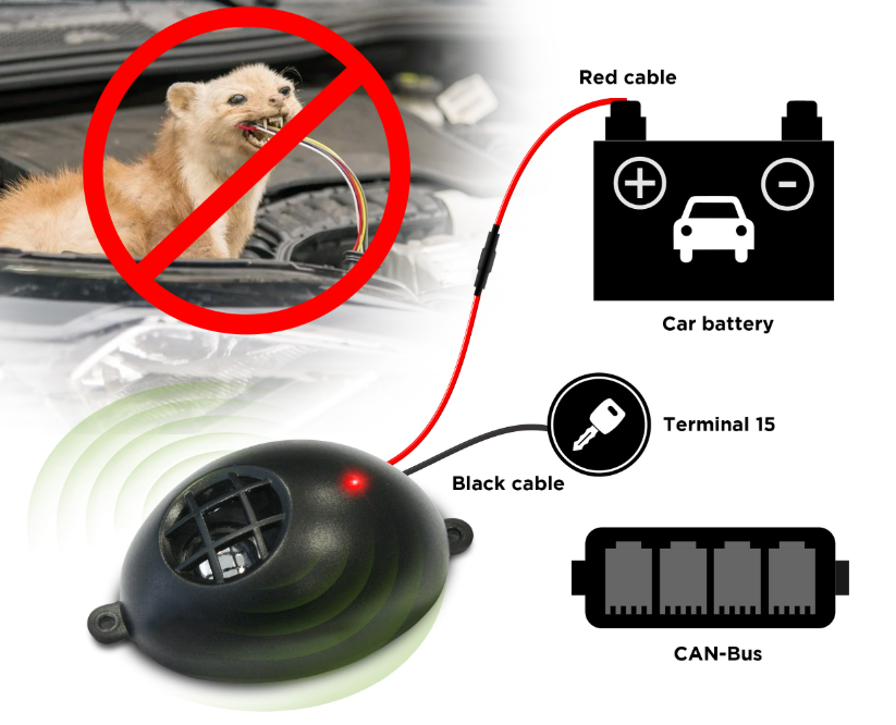 Tento odpuzovač odežene kuny, jiné hlodavce a díky silnému LED světlu i kočky z vašeho auta a garáže. Vydává ultrazvukové vlny a světelné signály, které jsou hlodavcům i kočkám...