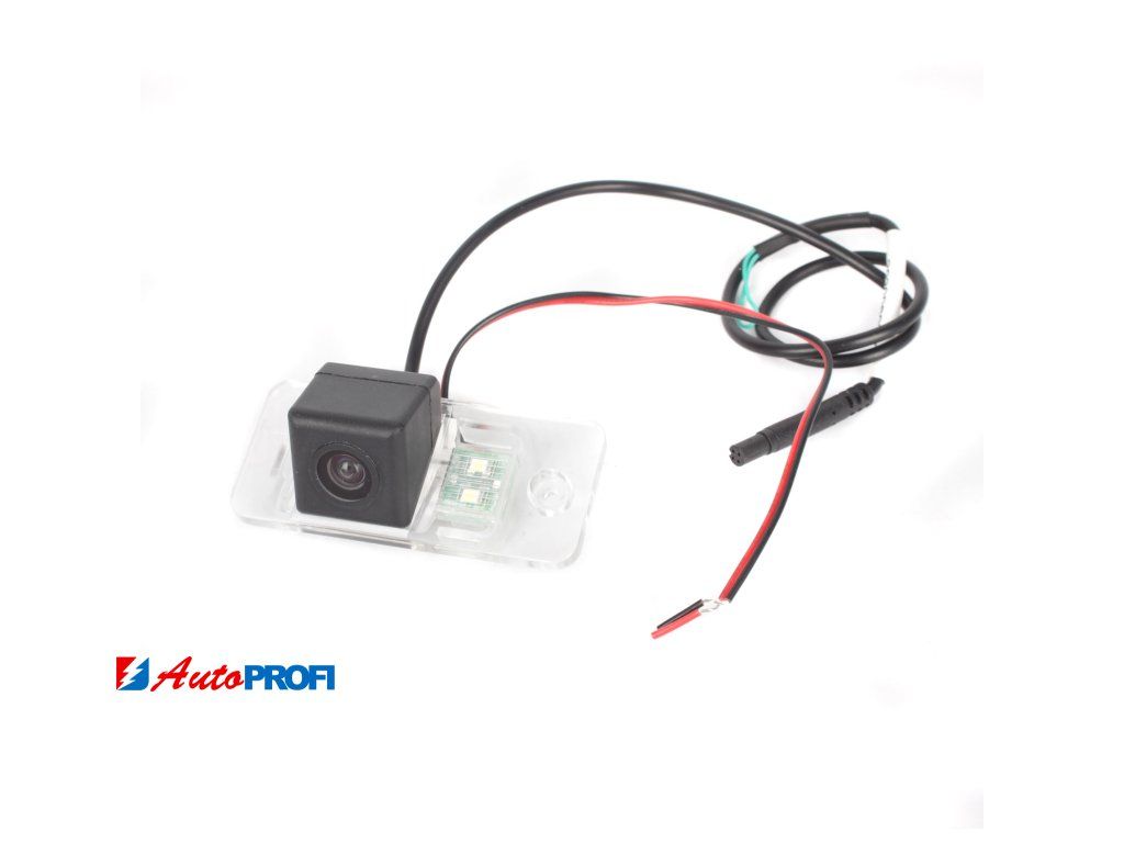 OEM barevná parkovací kamera pro instalaci do lampy pro osvětlení zadní registrační značky. Součástí kamery je místo pro umístění patice se žárovkou z původního světla pro registrační značku.