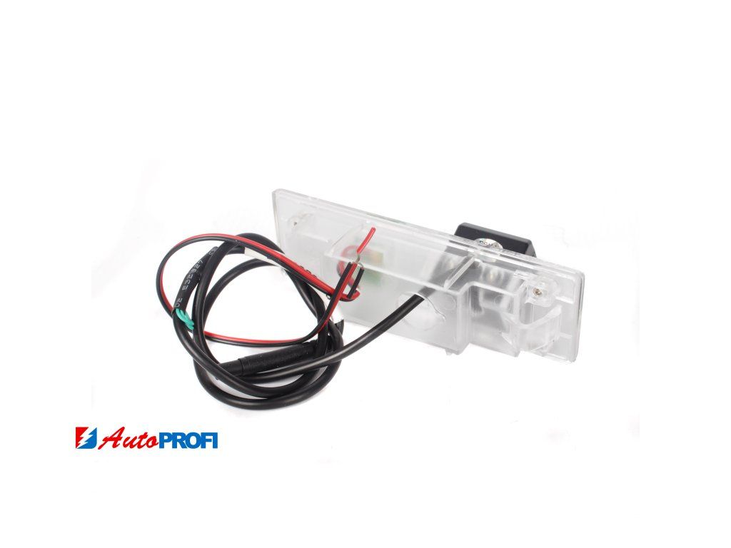 OEM barevná parkovací kamera pro instalaci do lampy pro osvětlení zadní registrační značky. Součástí kamery je LED světlo nahrazující původní osvětlení.
