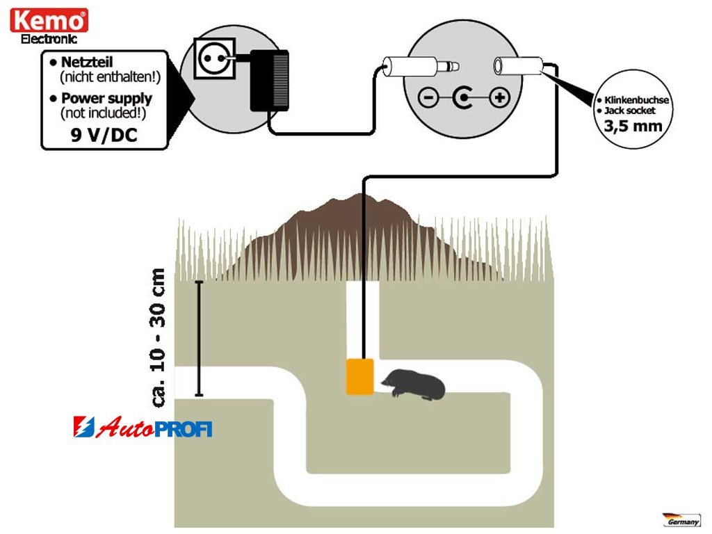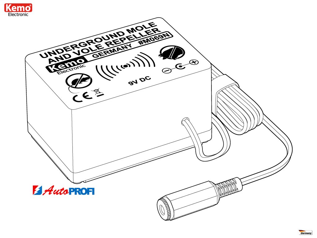 Ultrazvukový odpuzovač M069N generuje intenzivní seismické vibrace v krátkých časových intervalech, které efektivně procházejí půdou a účinně odstrašují hraboše, krtky a jiné podobné hlodavce. Modul je umístěn v blízkosti nor zvířat a napájen kabelem s provozním napětím 9 V/DC. Modul je schopen pokrýt maximálně 1000 m2 zahradní plochy.