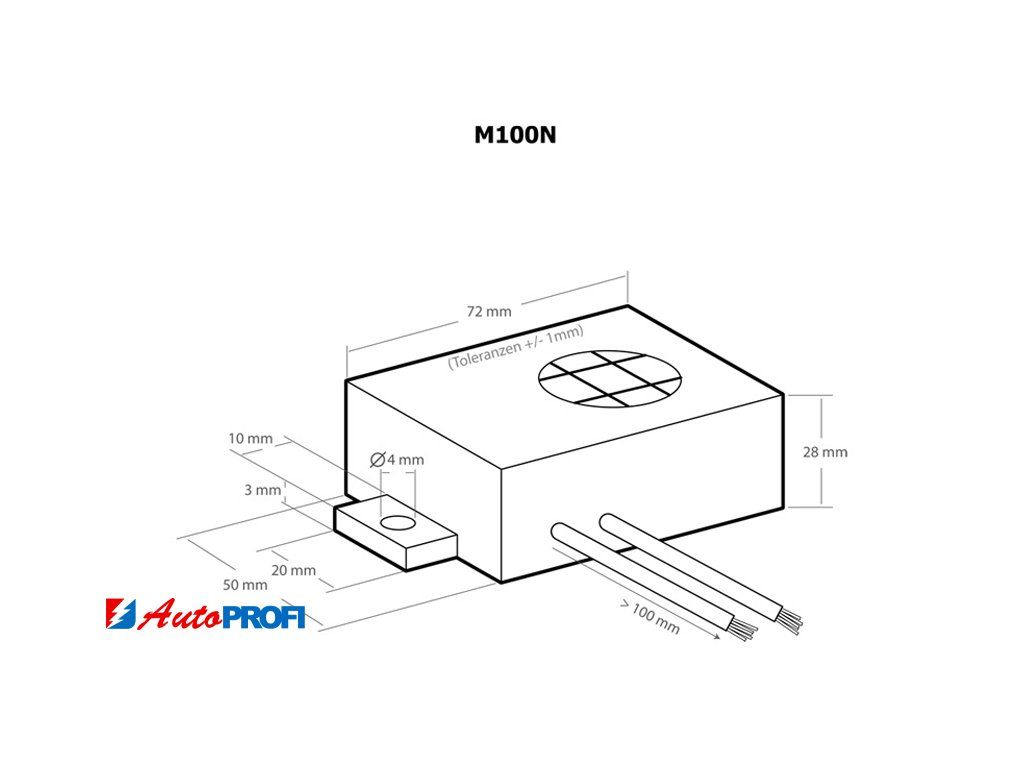 Odpuzovač kun a hlodavců M100N produkuje agresivní ultrazvukové signály pro lidské ucho neslyšitelné, které jsou pro kuny a hlodavce velmi nepříjemné a zaplaší je. Uvnitř je vybavený ultrazvukovou hlavičkou polosférického tvaru, která vysílá nepravidelný ultrazvukový signál v rozsahu 23kHz v širokém úhlu > 140°. Instaluje se do motorového prostoru nebo do vstupního otvoru ve vozidle. Je třeba mít na zřeteli, aby ve směru vysílání bylo co nejvíc volného prostoru a aby ultrazvukovým signálem byla pokryta co největší plocha v motorovém prostoru. Ultrazvuk se šíří přímočaře jako světlo, to znamená, že za všemi prekážkami nebudou tóny aktivní.